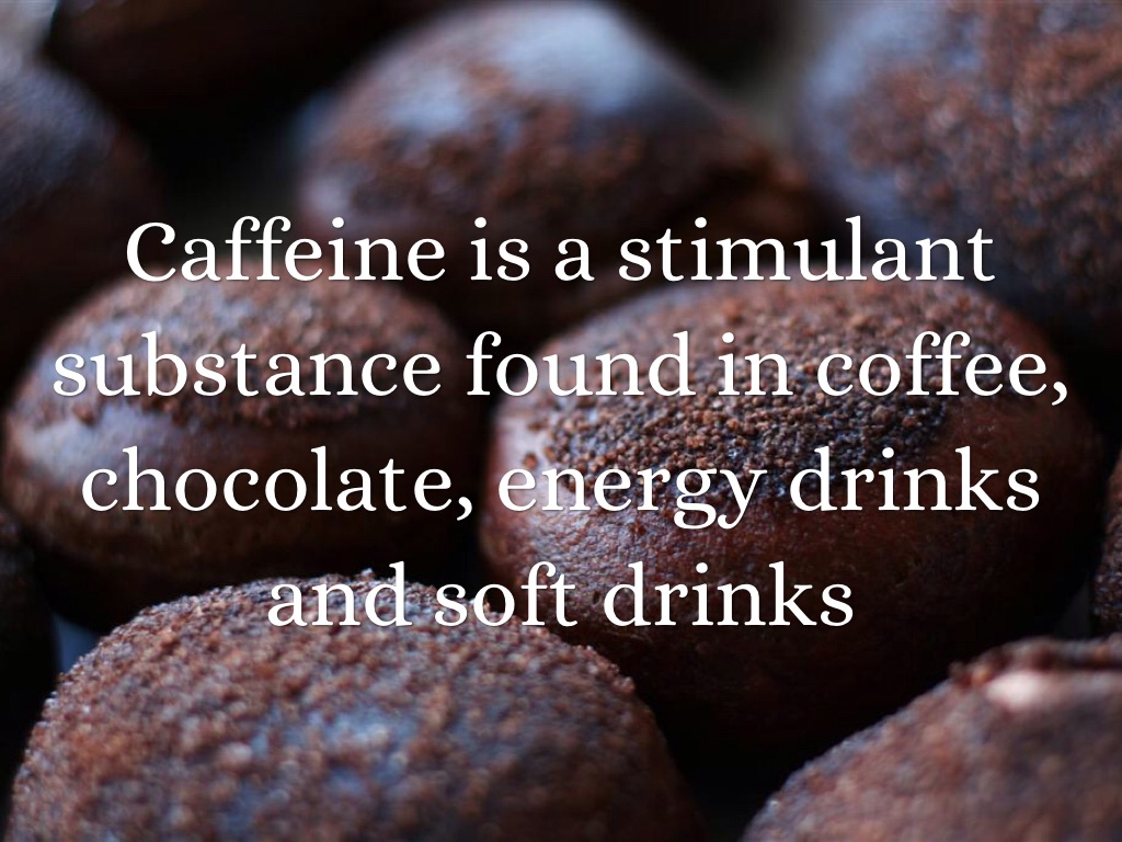 Caffeine is a stimulant substance found in coffee, chocolate, energy drinks and soft drinks