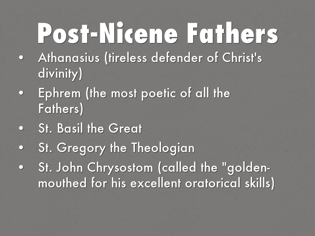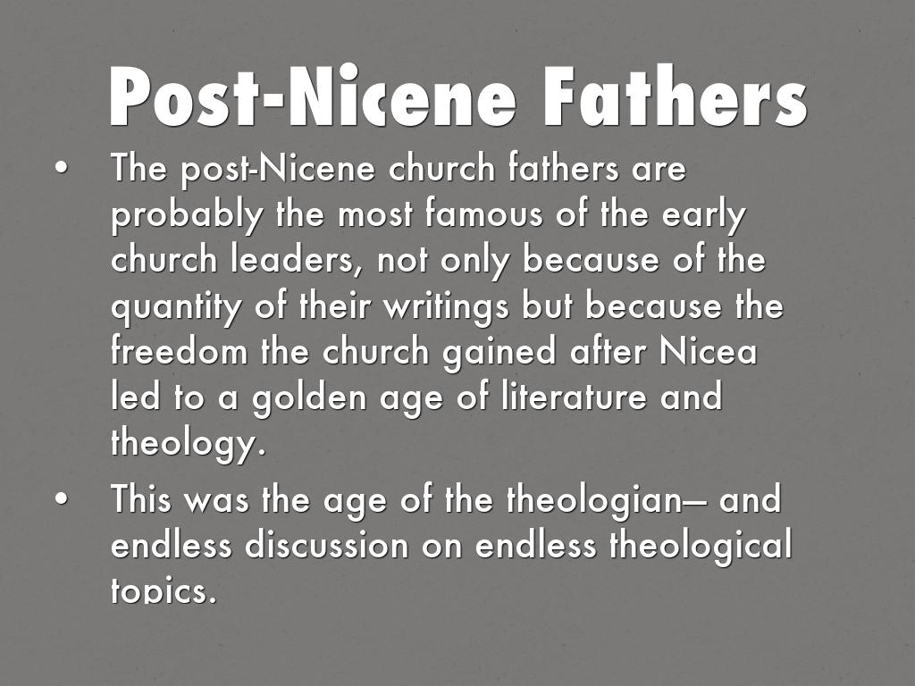 - The post-Nicene church fathers are probably the most famous of the early church leaders, not only because of the quantity of their writings but because the freedom the church gained after Nicea led to a golden age of literature and theology.