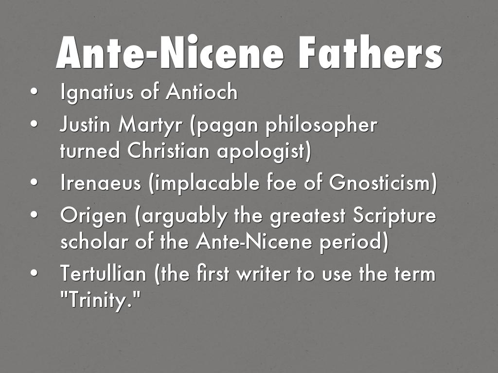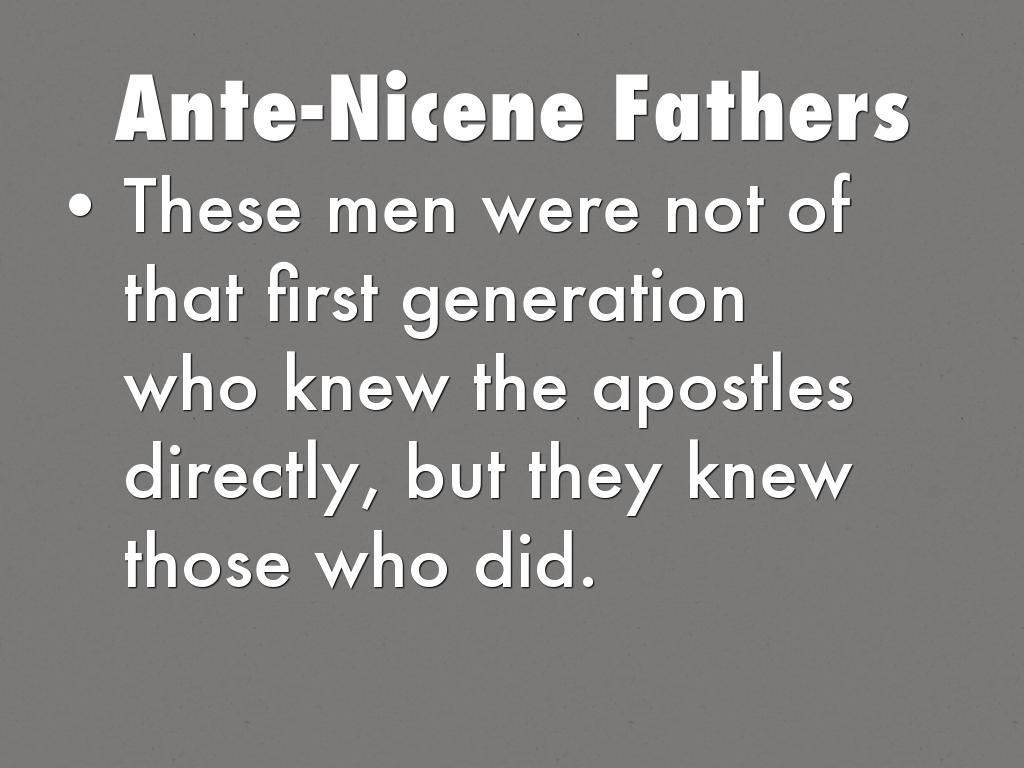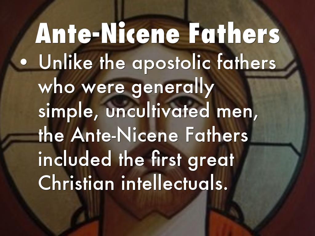 - Unlike the apostolic fathers who were generally simple, uncultivated men, the Ante-Nicene Fathers included the first great Christian intellectuals.