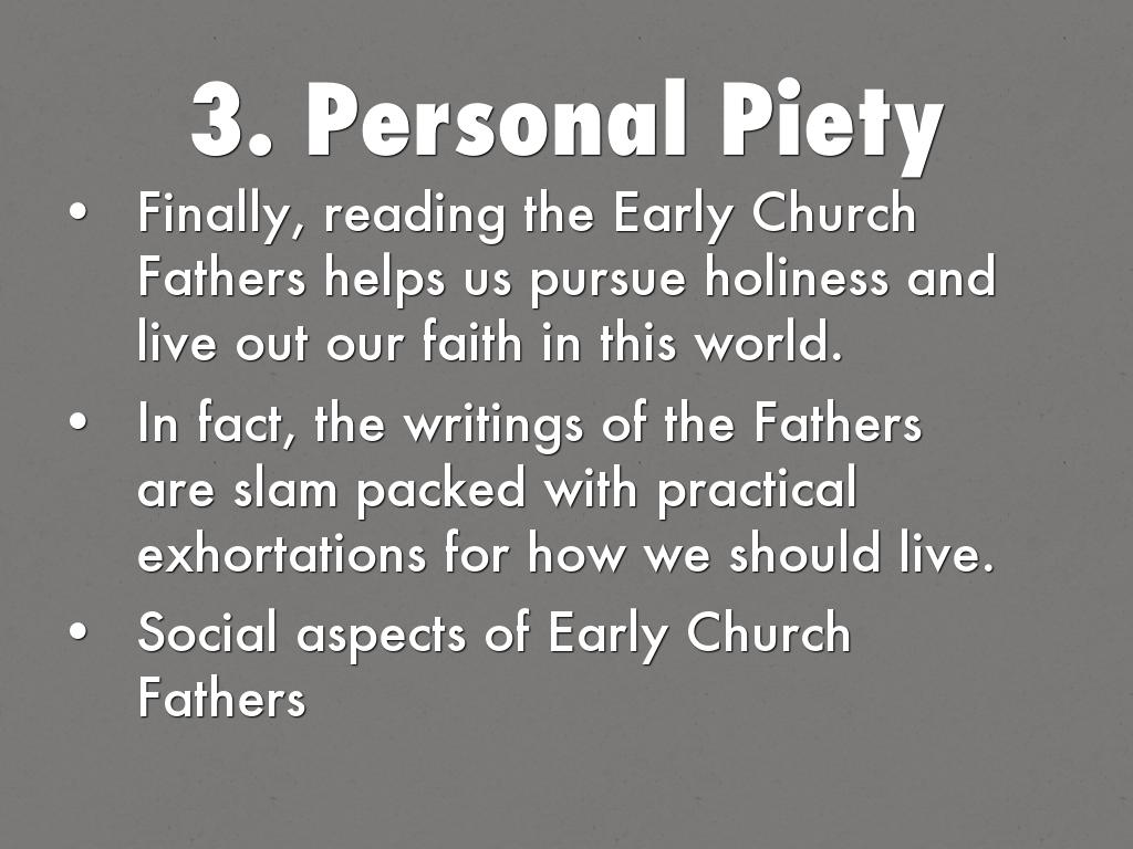 - Finally, reading the Early Church Fathers helps us pursue holiness and live out our faith in this world.