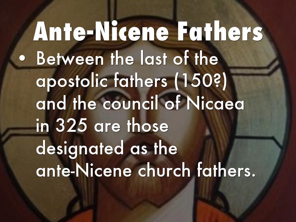 - Between the last of the apostolic fathers (150?) and the council of Nicaea in 325 are those designated as the ante-Nicene church fathers.