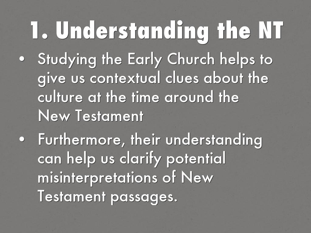- Studying the Early Church helps to give us contextual clues about the culture at the time around the New Testament