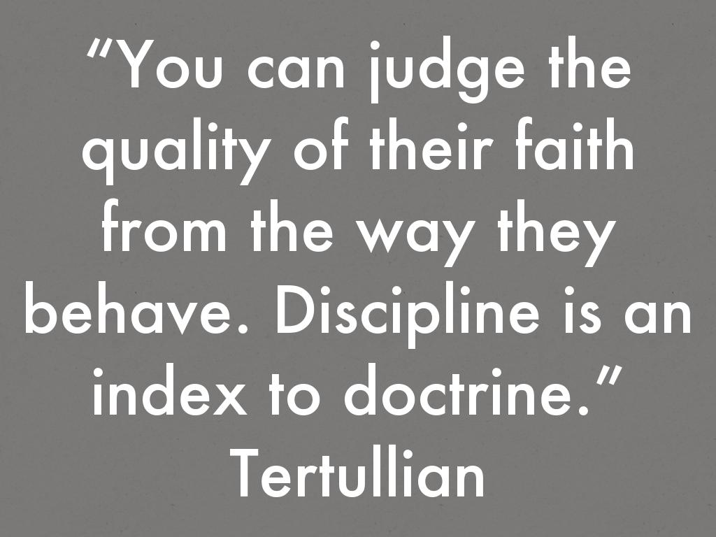 “You can judge the quality of their faith from the way they behave. Discipline is an index to doctrine.”