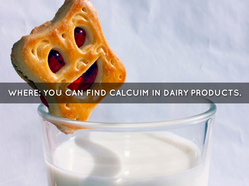 WHERE: YOU CAN FIND CALCUIM IN DAIRY PRODUCTS.