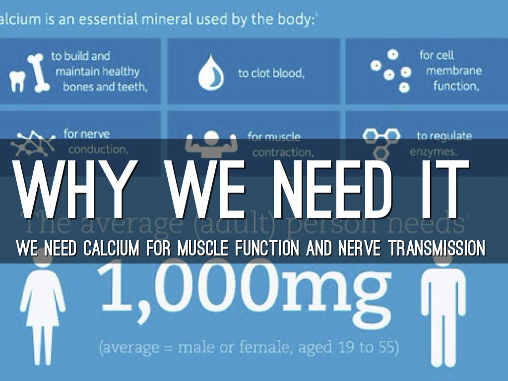 WE NEED CALCIUM FOR MUSCLE FUNCTION AND NERVE TRANSMISSION