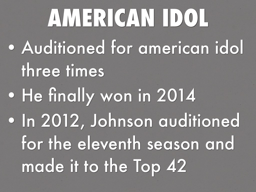 In 2012, Johnson auditioned for the eleventh season and made it to the Top 42