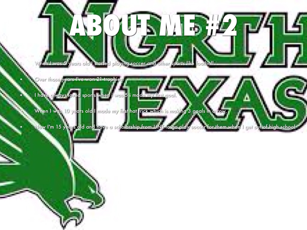 • Now I'm 15 years old and have a scholarship from UNT to go play soccer for them when I get out of high school