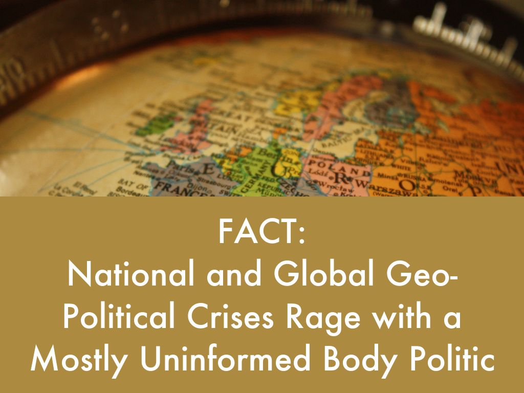 National and Global Geo-Political Crises Rage with a Mostly Uninformed Body Politic