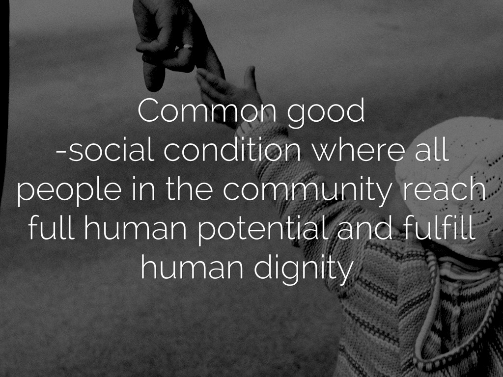 -social condition where all people in the community reach full human potential and fulfill human dignity