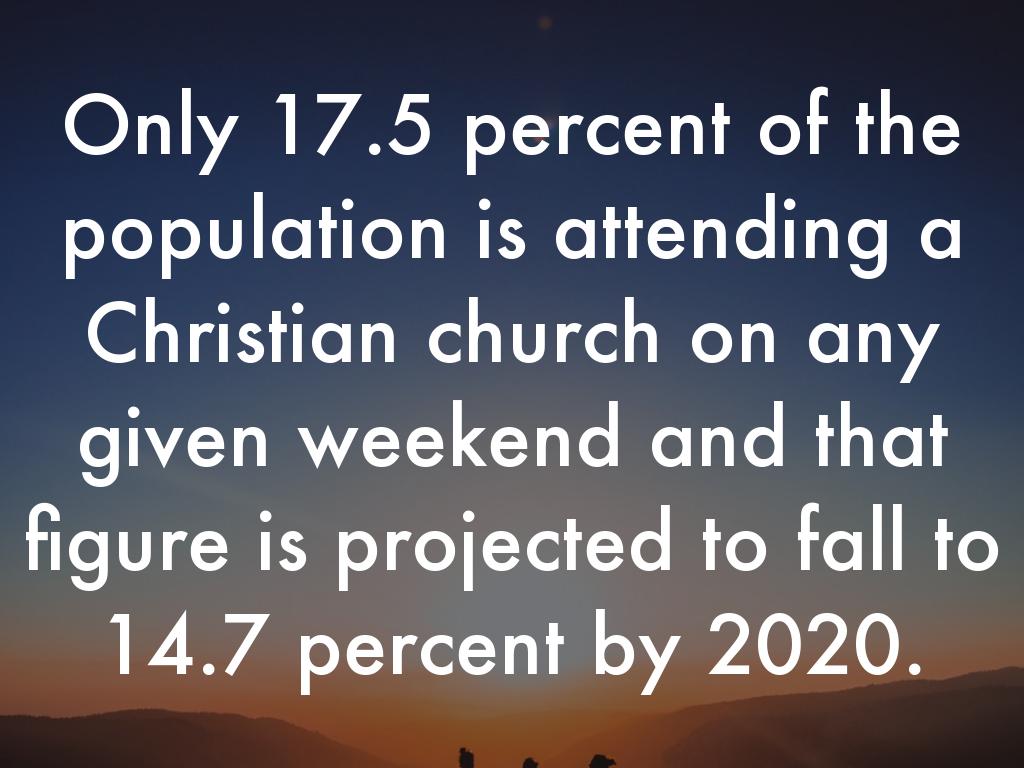 Only 17.5 percent of the population is attending a Christian church on any given weekend and that figure is projected to fall to 14.7 percent by 2020.
