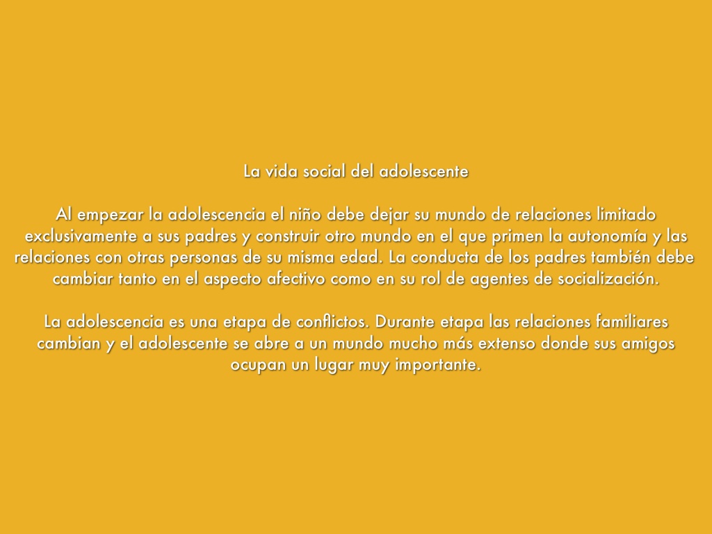 Al empezar la adolescencia el niño debe dejar su mundo de relaciones limitado exclusivamente a sus padres y construir otro mundo en el que primen la autonomía y las relaciones con otras personas de su misma edad. La conducta de los padres también debe cambiar tanto en el aspecto afectivo como en su rol de agentes de socialización.