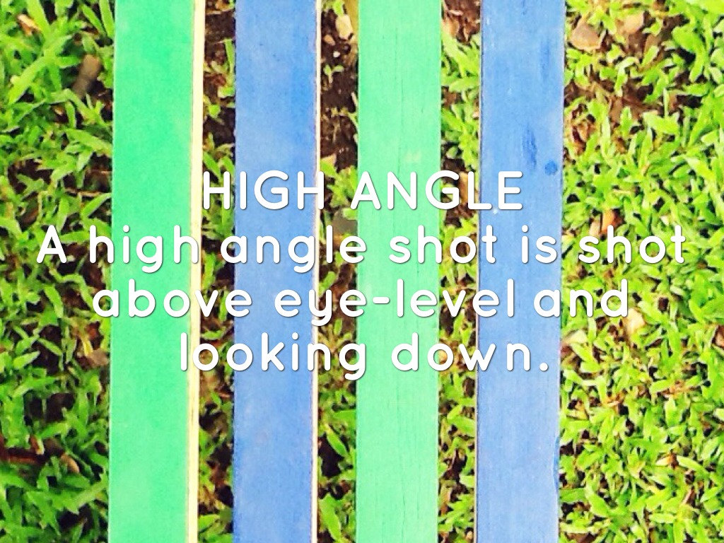 A low angle is a camera shot taken below eye-level also looking up at the subject.