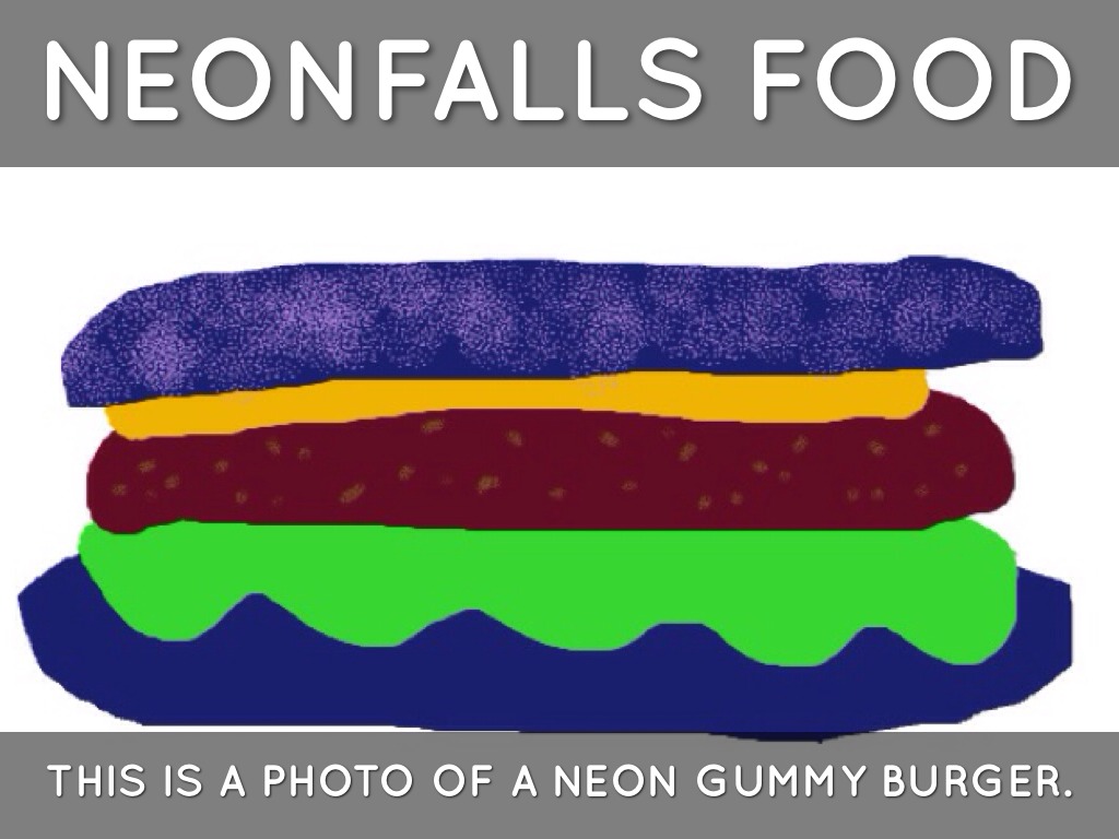 THIS IS A PHOTO OF A NEON GUMMY BURGER.