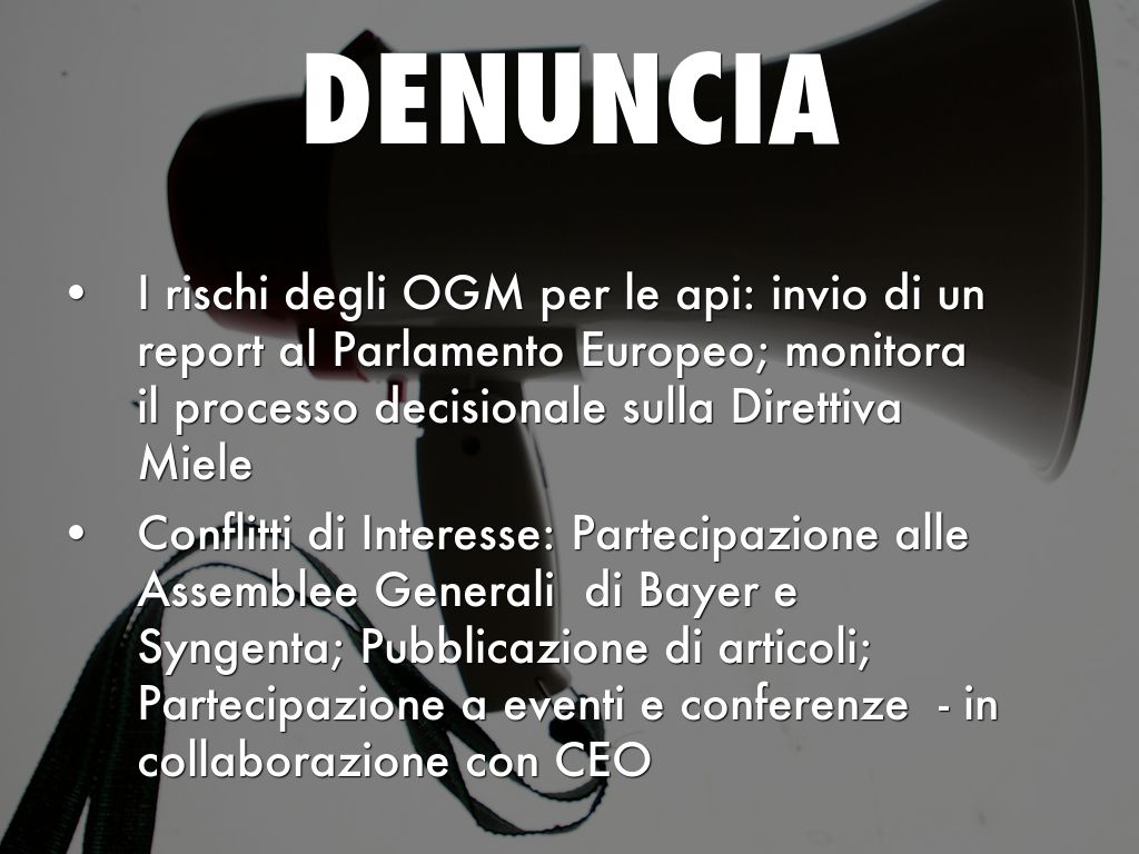 - I rischi degli OGM per le api: invio di un report al Parlamento Europeo; monitora il processo decisionale sulla Direttiva Miele