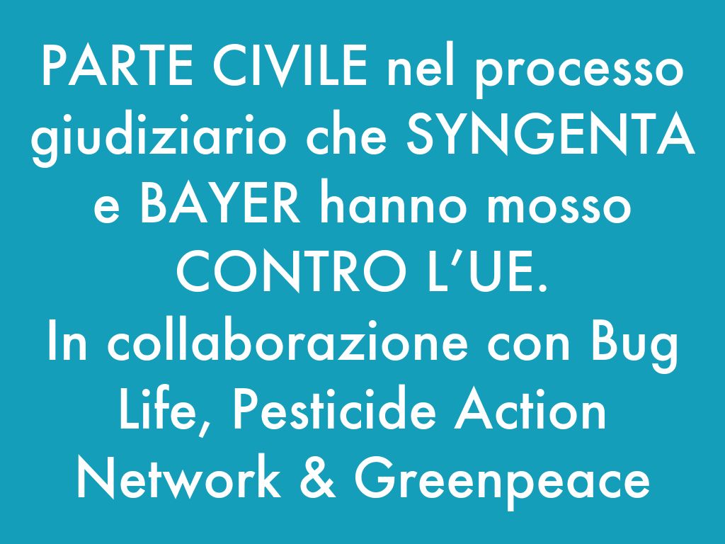 PARTE CIVILE nel processo giudiziario che SYNGENTA e BAYER hanno mosso CONTRO L’UE.