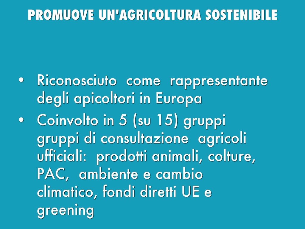 - Riconosciuto come rappresentante degli apicoltori in Europa