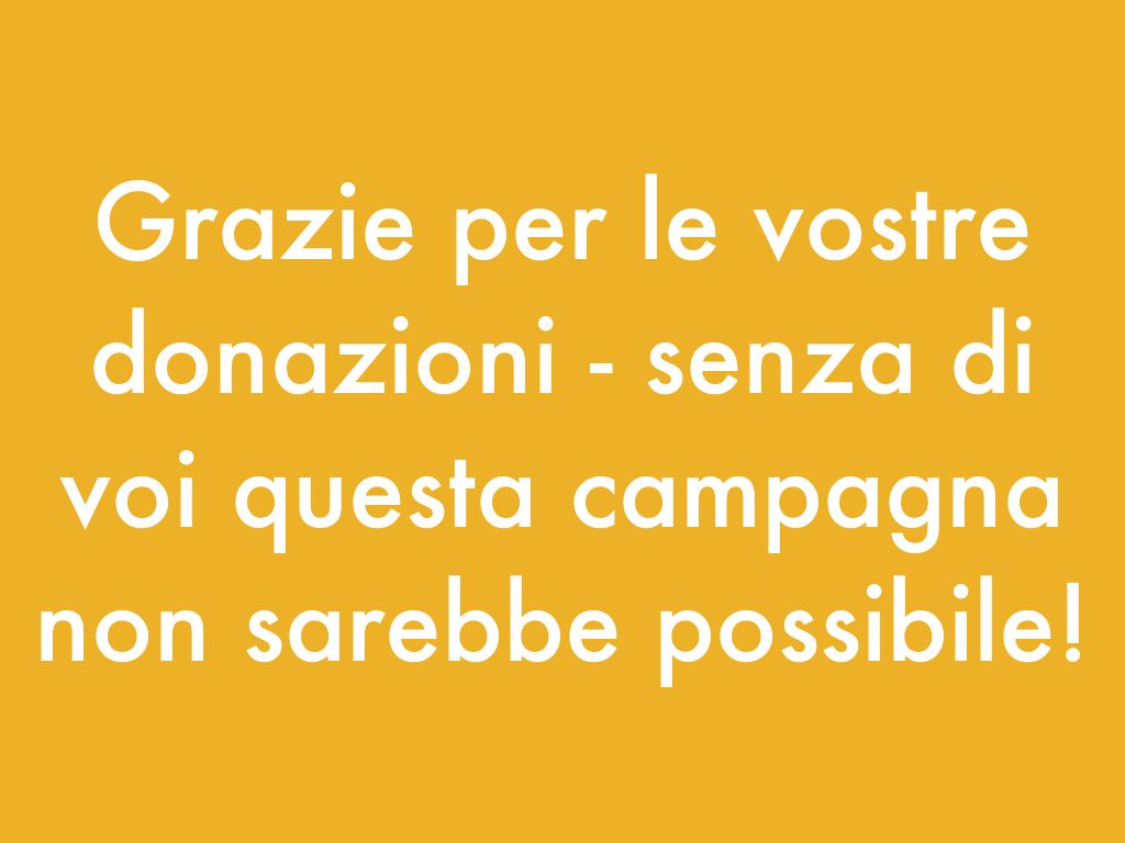 Grazie per le vostre donazioni - senza di voi questa campagna non sarebbe possibile!