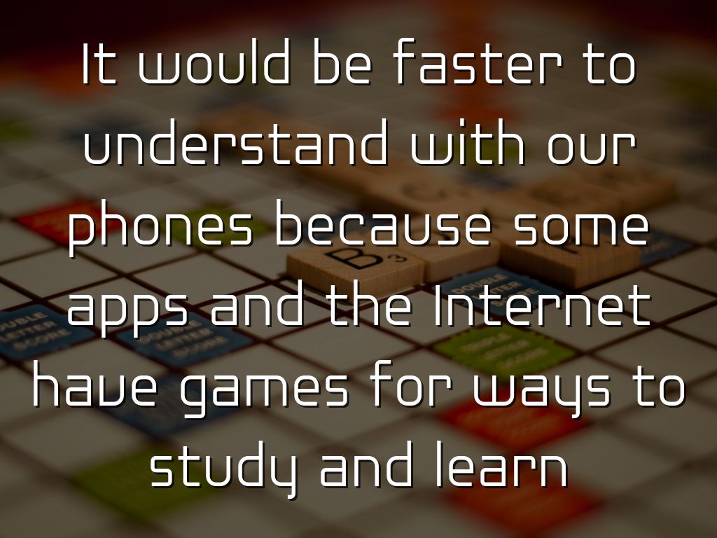It would be faster to understand with our phones because some apps and the Internet have games for ways to study and learn