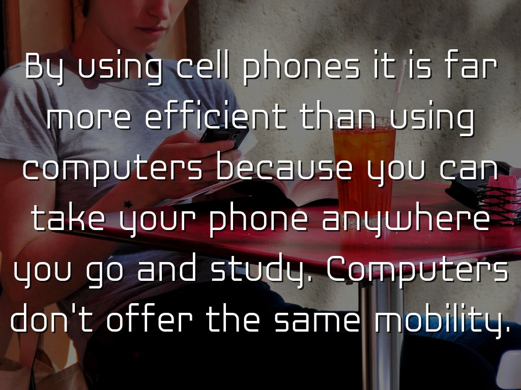 By using cell phones it is far more efficient than using computers because you can take your phone anywhere you go and study. Computers don't offer the same mobility.