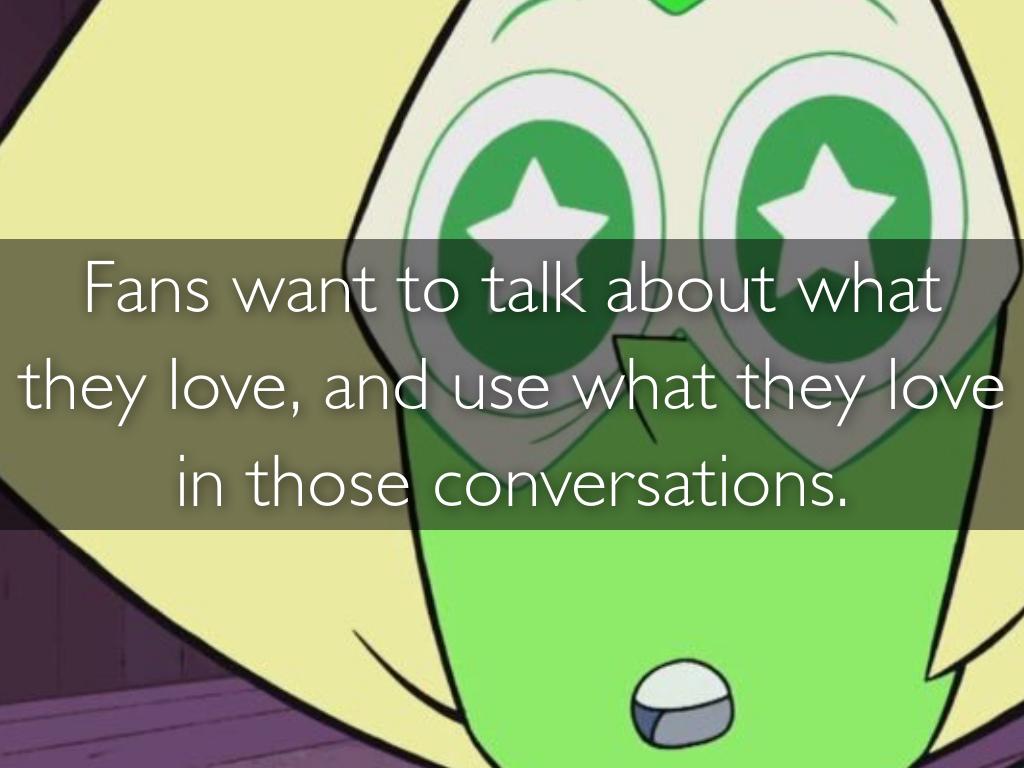 - Narratives, Art, Songs, Plays, Memes, Bumper Stickers, Sculptures, Cosplay, Vids, Comic Strips, In-Character Twitter Accounts, Cocktail Recipes, Cookbooks, Films, Manips, Websites, IRL Tours...