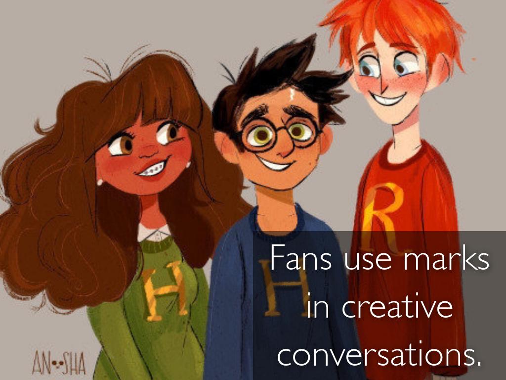 Again, fans make a point about the Harry Potter series by using a trademark from the Harry Potter series - the Weasley Sweaters - as well as the trademarked characters, who are also protected by copyright.