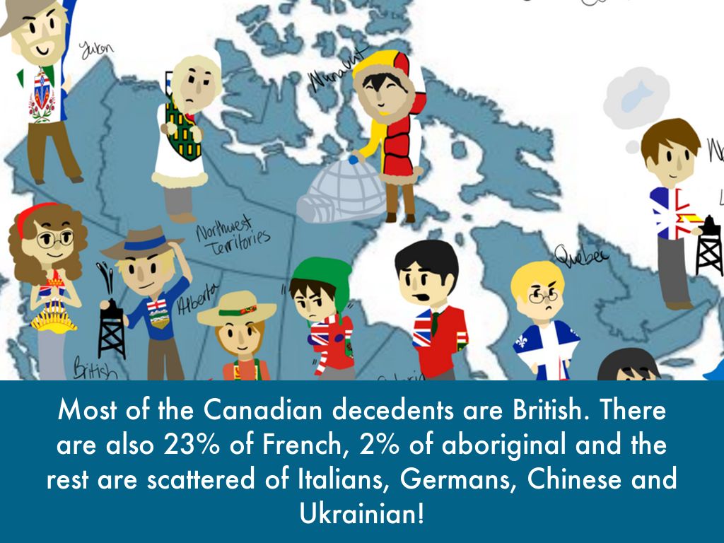 Most of the Canadian decedents are British. There are also 23% of French, 2% of aboriginal and the rest are scattered of Italians, Germans, Chinese and Ukrainian!