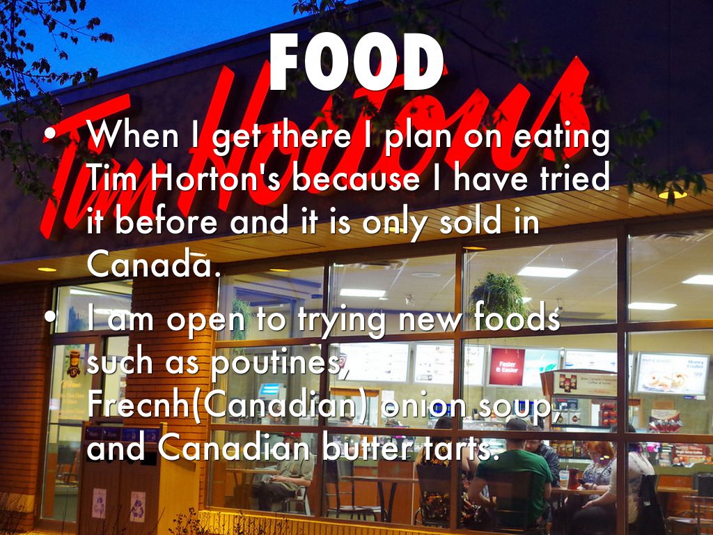 When I get there I plan on eating Tim Horton's because I have tried it before and it is only sold in Canada.