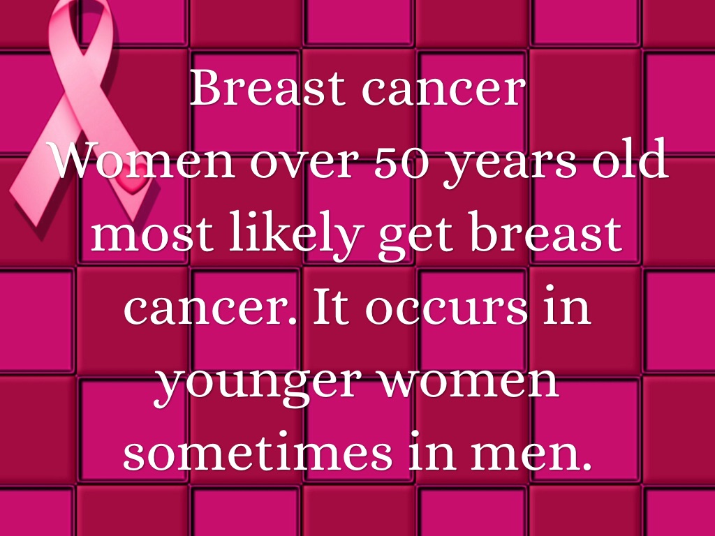 Women over 50 years old most likely get breast cancer. It occurs in younger women sometimes in men.