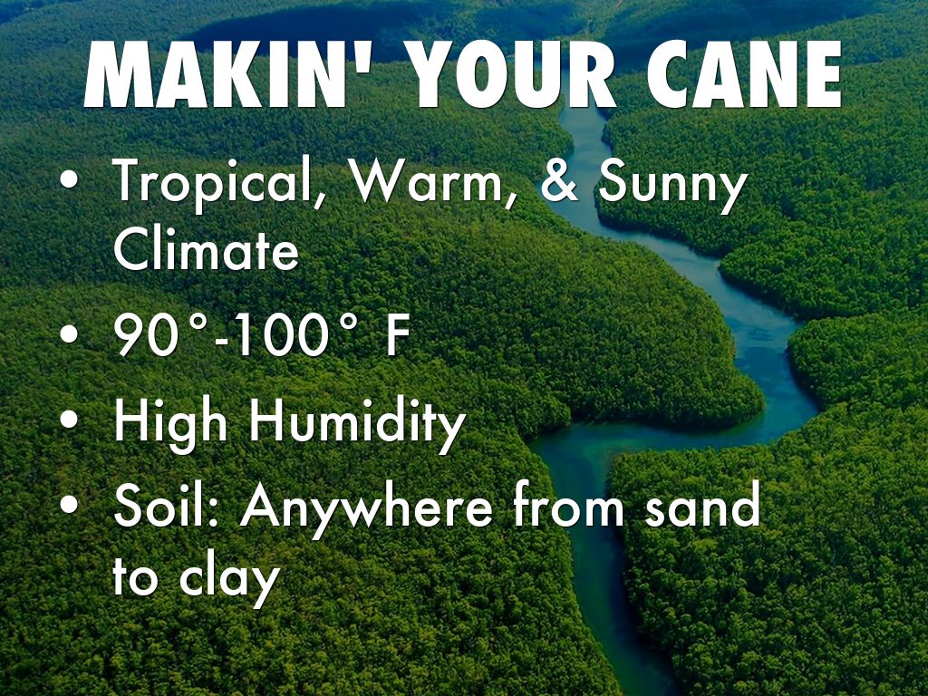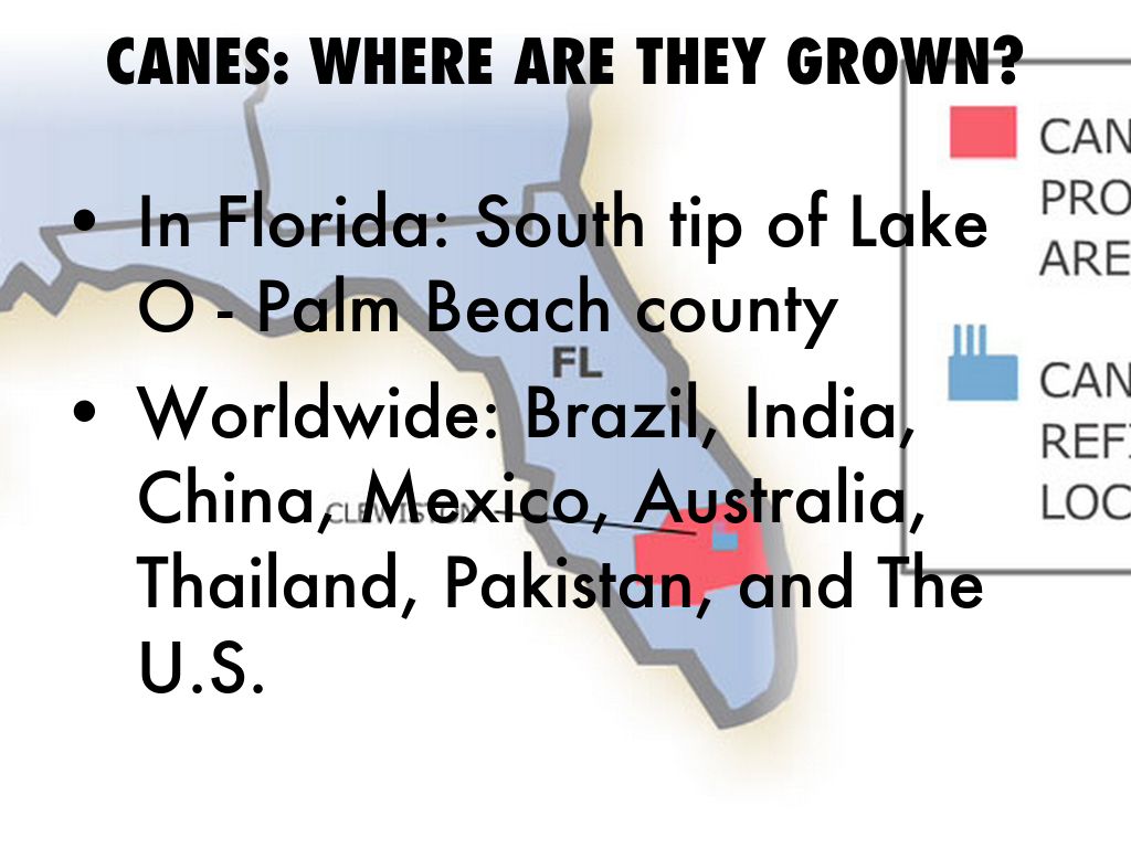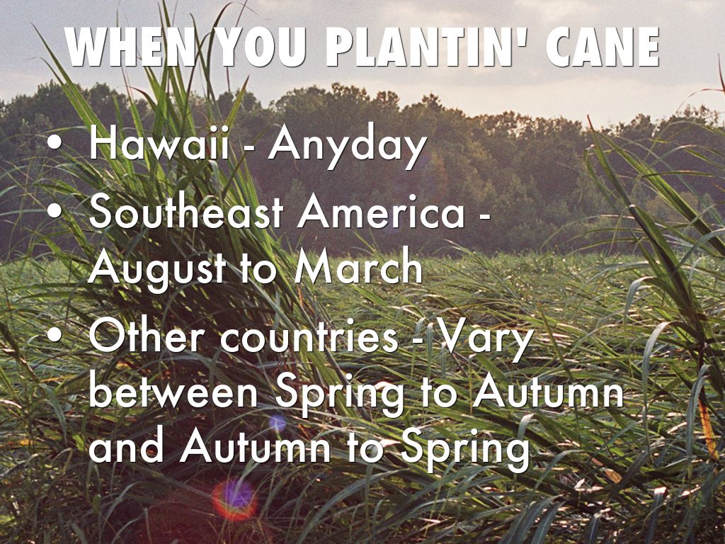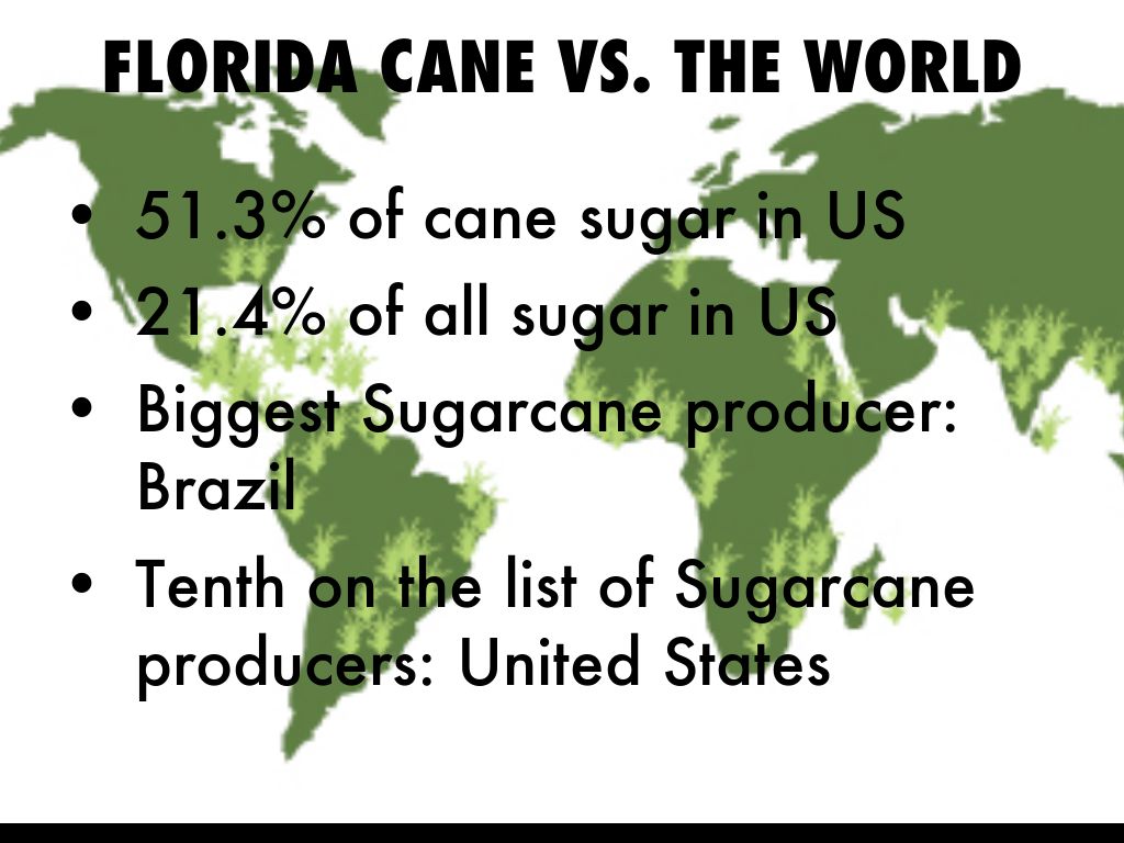 • Due to climate conditions, Hawaii and Southeastern US are the only places that can grow sugarcane