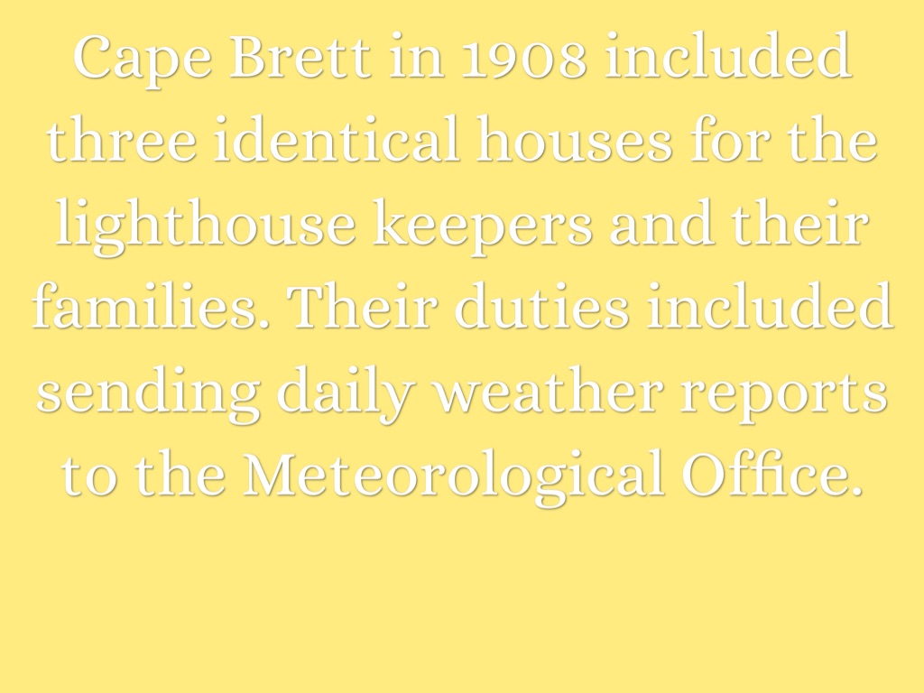 Cape Brett in 1908 included three identical houses for the lighthouse keepers and their families. Their duties included sending daily weather reports to the Meteorological Office.