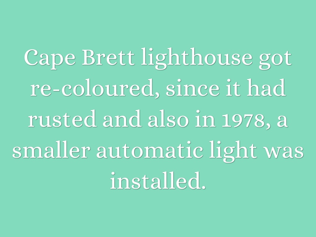 Cape Brett lighthouse got re-coloured, since it had rusted and also in 1978, a smaller automatic light was installed.