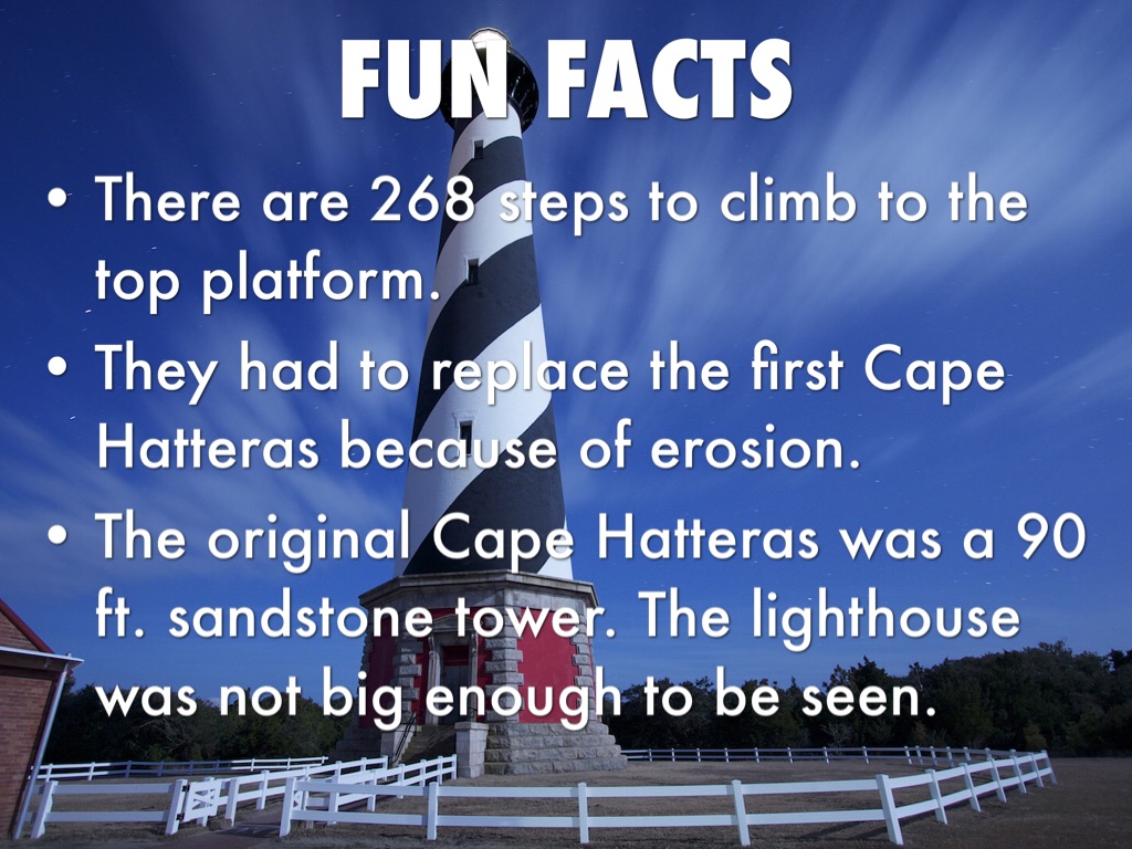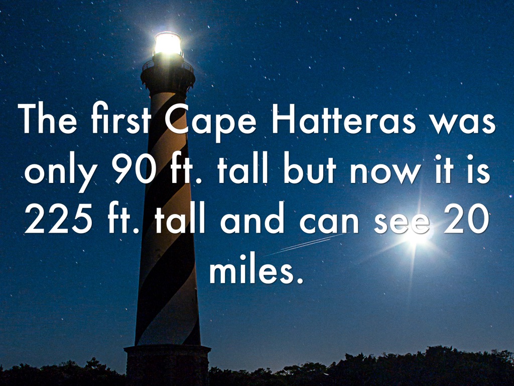 The first Cape Hatteras was only 90 ft. tall but now it is 225 ft. tall and can see 20 miles.