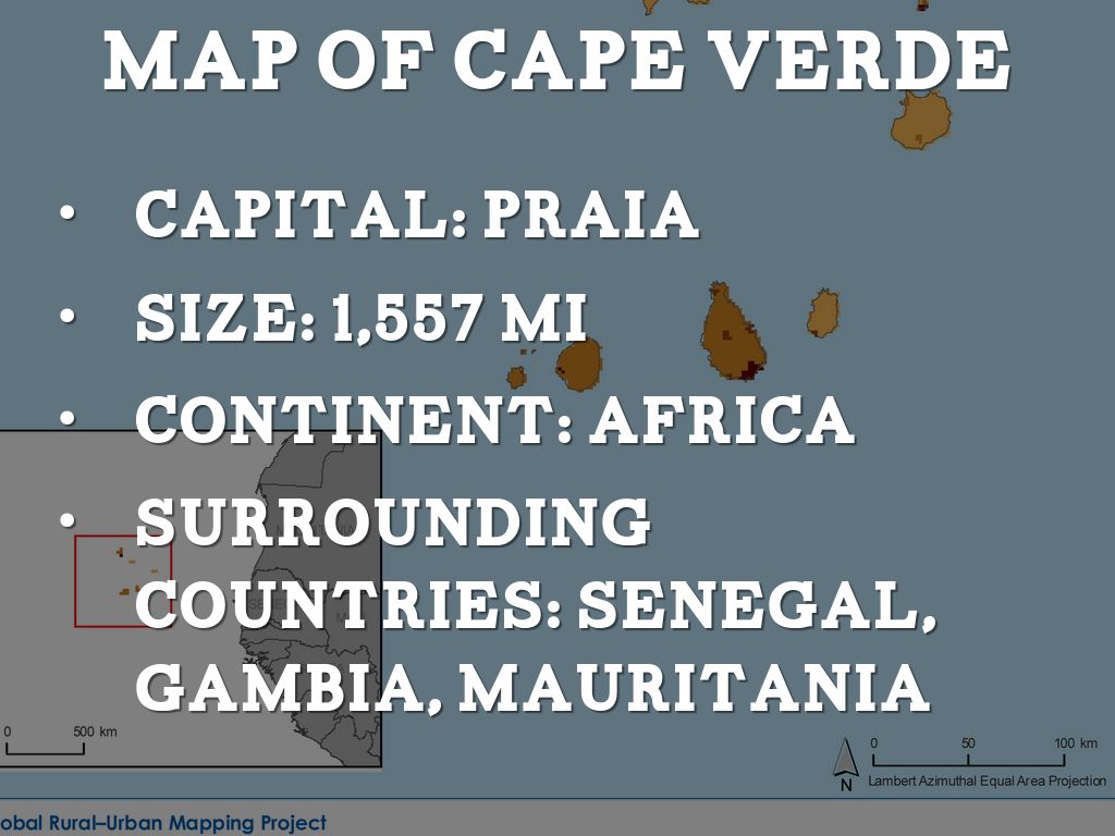 Cape Verde is an archipelago and is located in the North Atlantic Ocean, approximately 604 kilometres off the coast of West Africa and is due south of the Canary Islands.