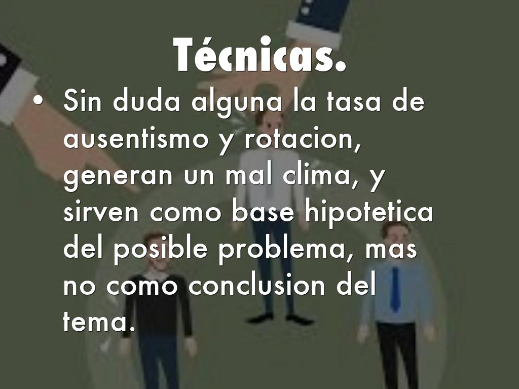 - Sin duda alguna la tasa de ausentismo y rotacion, generan un mal clima, y sirven como base hipotetica del posible problema, mas no como conclusion del tema.