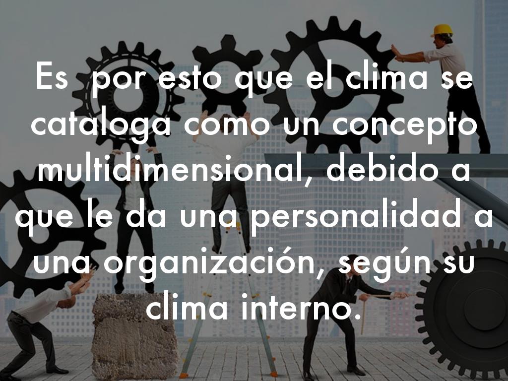 Es por esto que el clima se cataloga como un concepto multidimensional, debido a que le da una personalidad a una organización, según su clima interno.