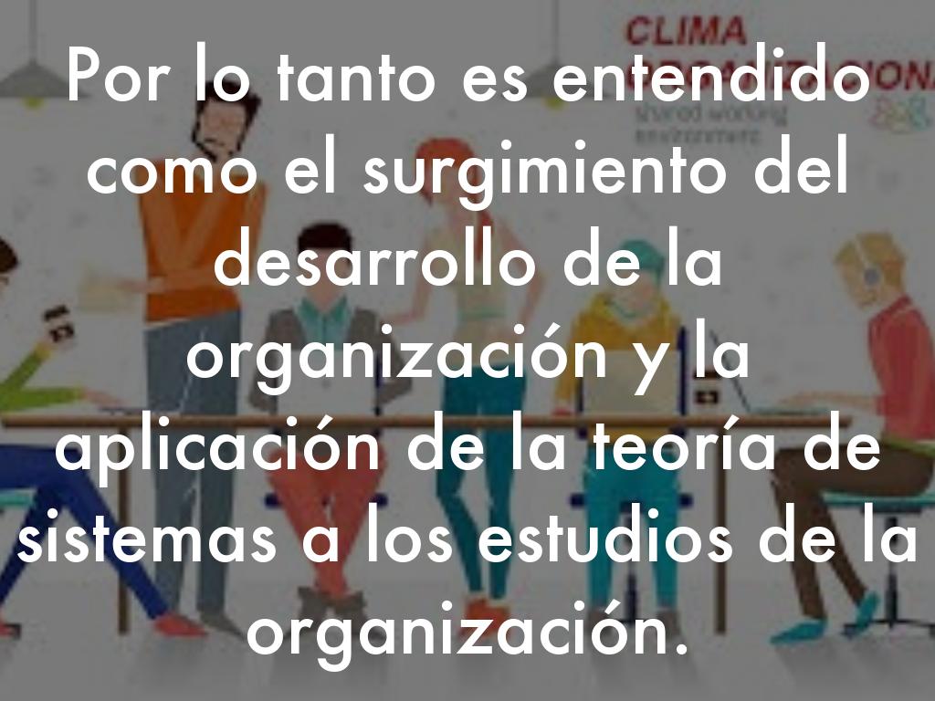 Por lo tanto es entendido como el surgimiento del desarrollo de la organización y la aplicación de la teoría de sistemas a los estudios de la organización.