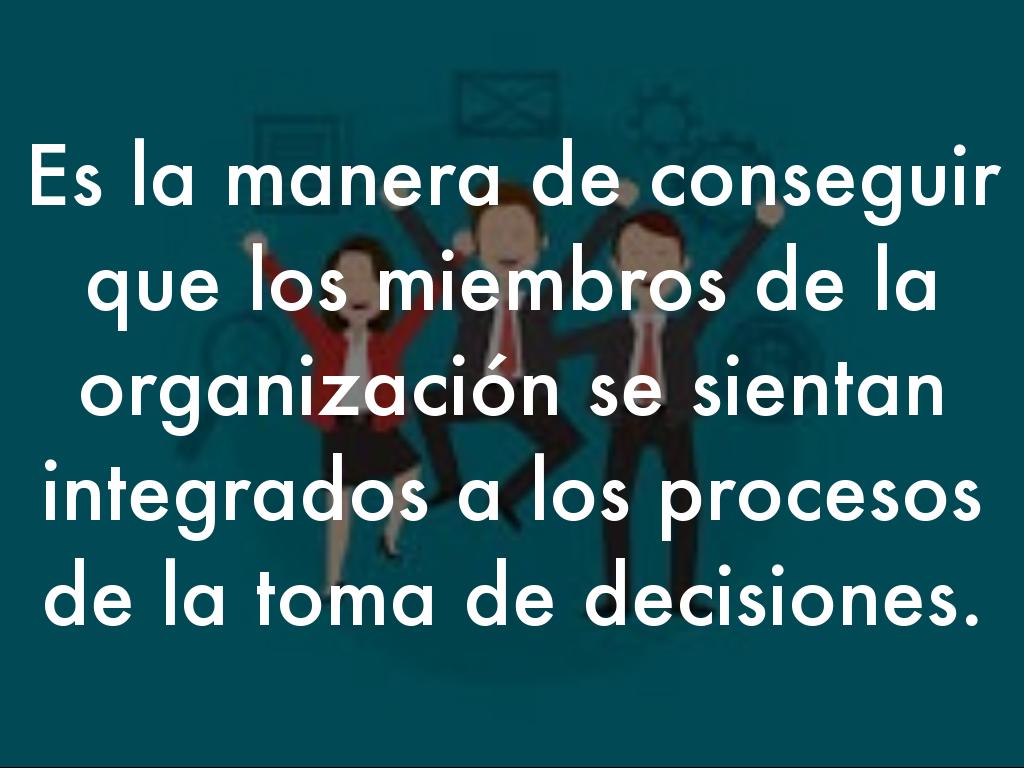 Es la manera de conseguir que los miembros de la organización se sientan integrados a los procesos de la toma de decisiones.