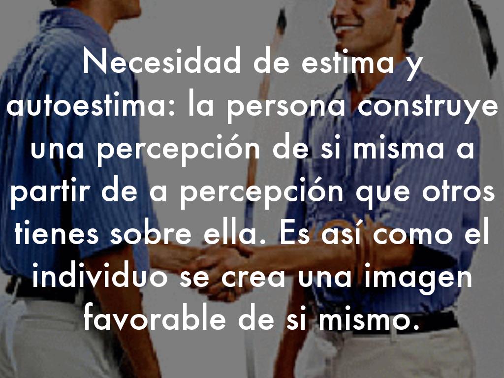 Necesidad de estima y autoestima: la persona construye una percepción de si misma a partir de a percepción que otros tienes sobre ella. Es así como el individuo se crea una imagen favorable de si mismo.