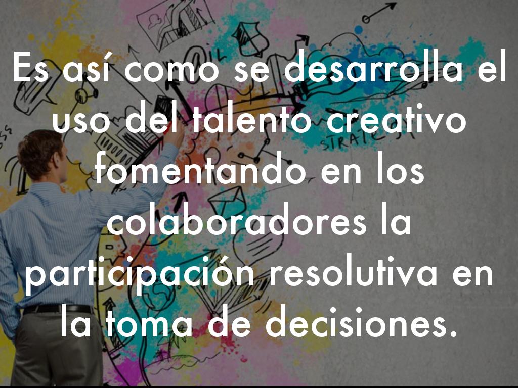 Es así como se desarrolla el uso del talento creativo fomentando en los colaboradores la participación resolutiva en la toma de decisiones.