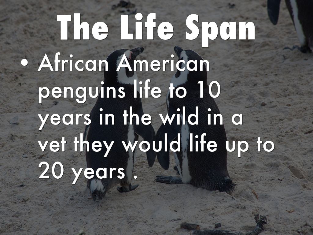African American penguins life to 10 years in the wild in a vet they would life up to 20 years .
