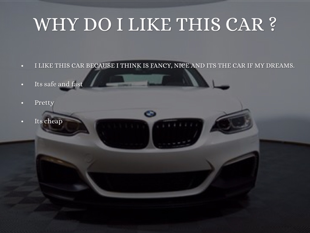 I LIKE THIS CAR BECAUSE I THINK IS FANCY, NICE AND ITS THE CAR IF MY DREAMS.