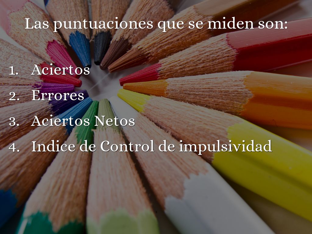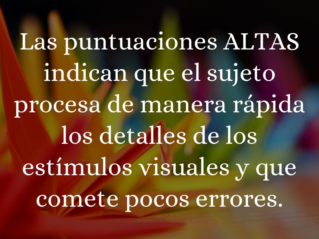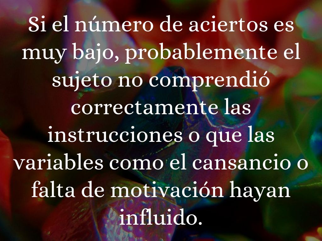 Si el número de aciertos es muy bajo, probablemente el sujeto no comprendió correctamente las instrucciones o que las variables como el cansancio o falta de motivación hayan influido.