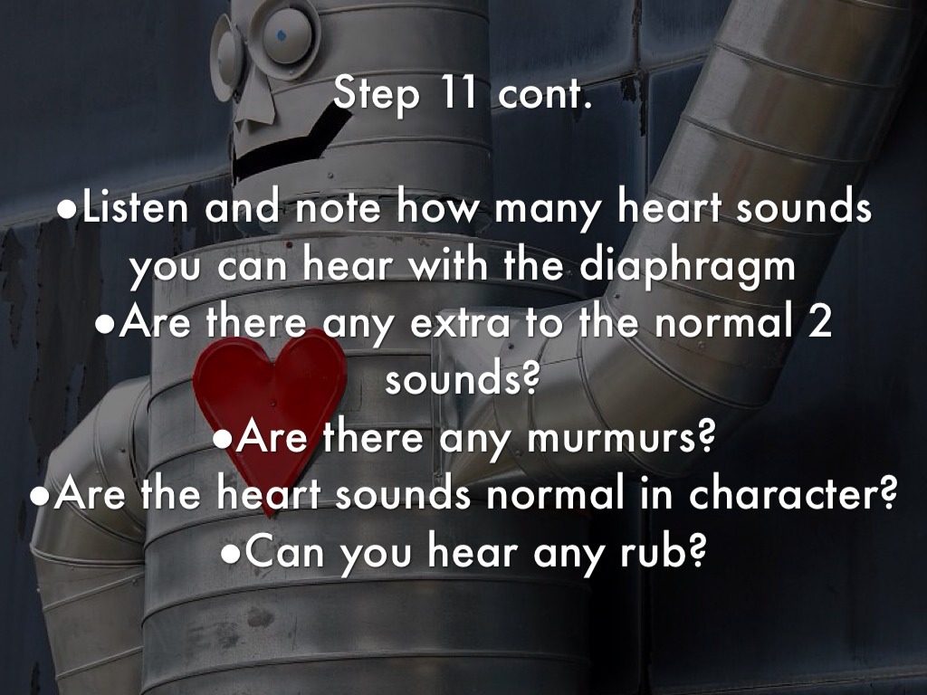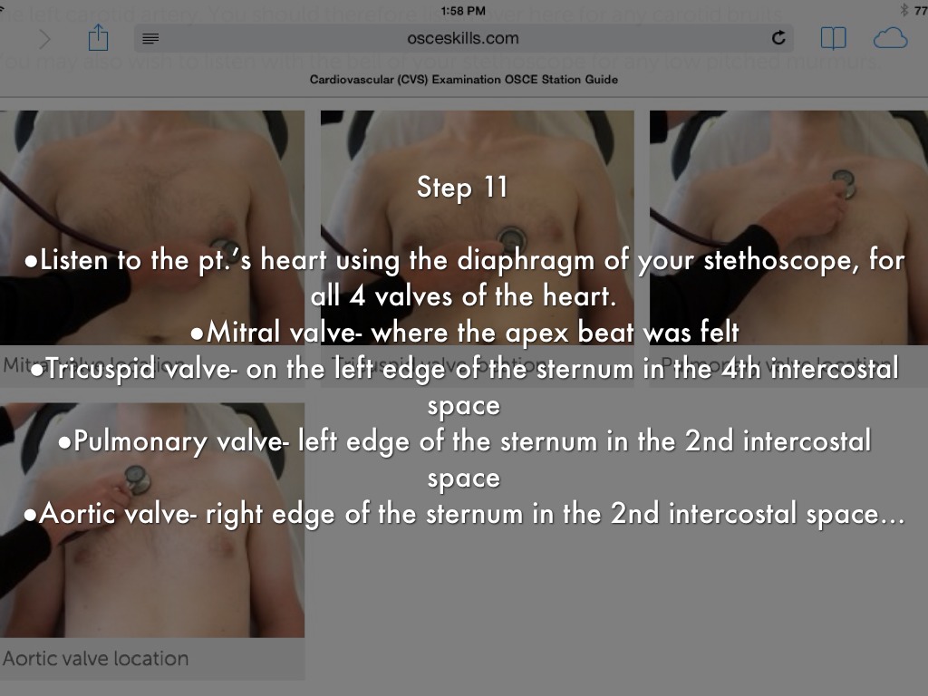 ●Listen to the pt.’s heart using the diaphragm of your stethoscope, for all 4 valves of the heart.