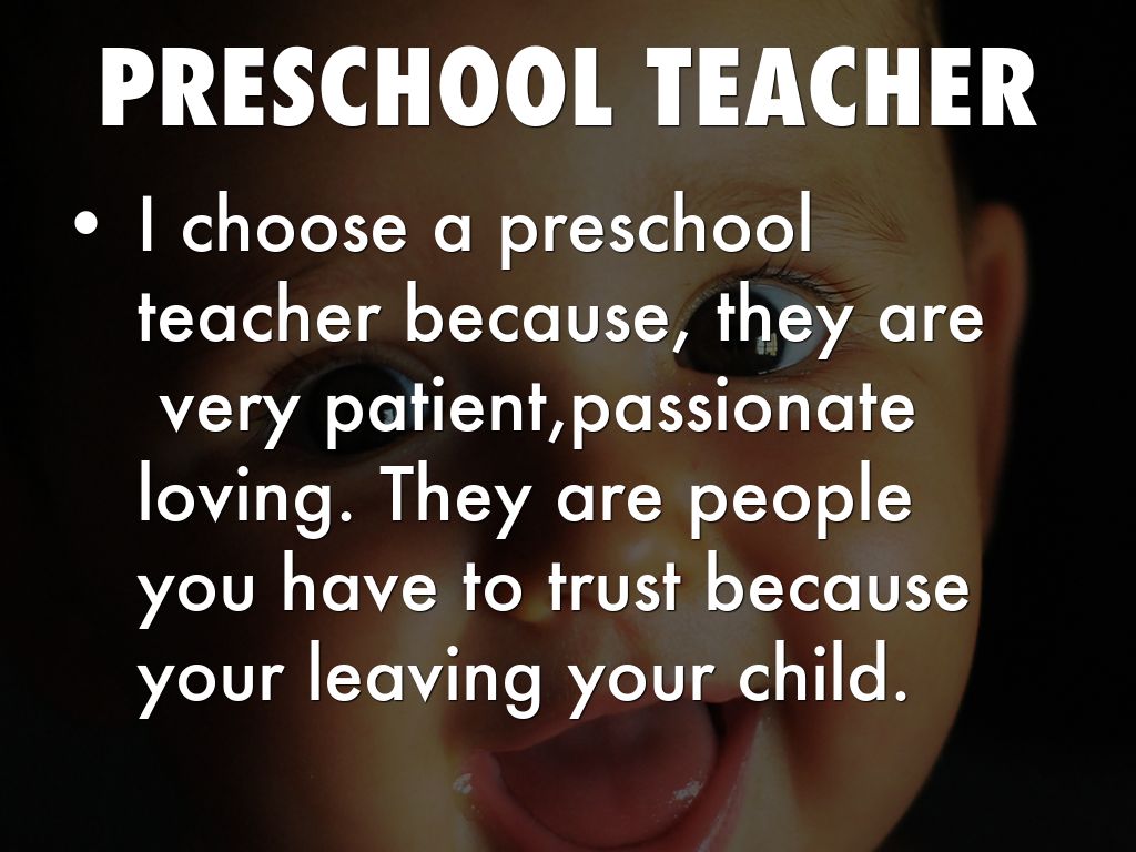 • I choose a preschool teacher because, they are very patient,passionate loving. They are people you have to trust because your leaving your child.
