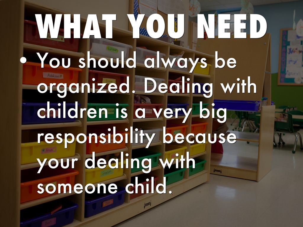 • You should always be organized. Dealing with children is a very big responsibility because your dealing with someone child.