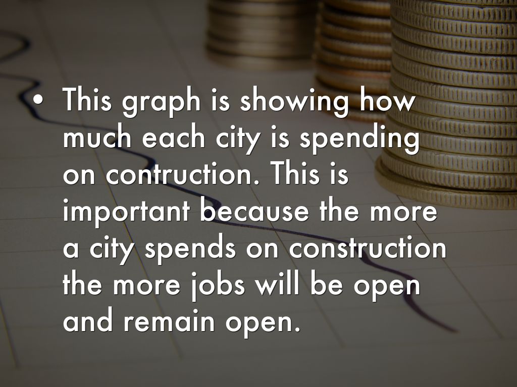 • This graph is showing how much each city is spending on contruction. This is important because the more a city spends on construction the more jobs will be open and remain open.