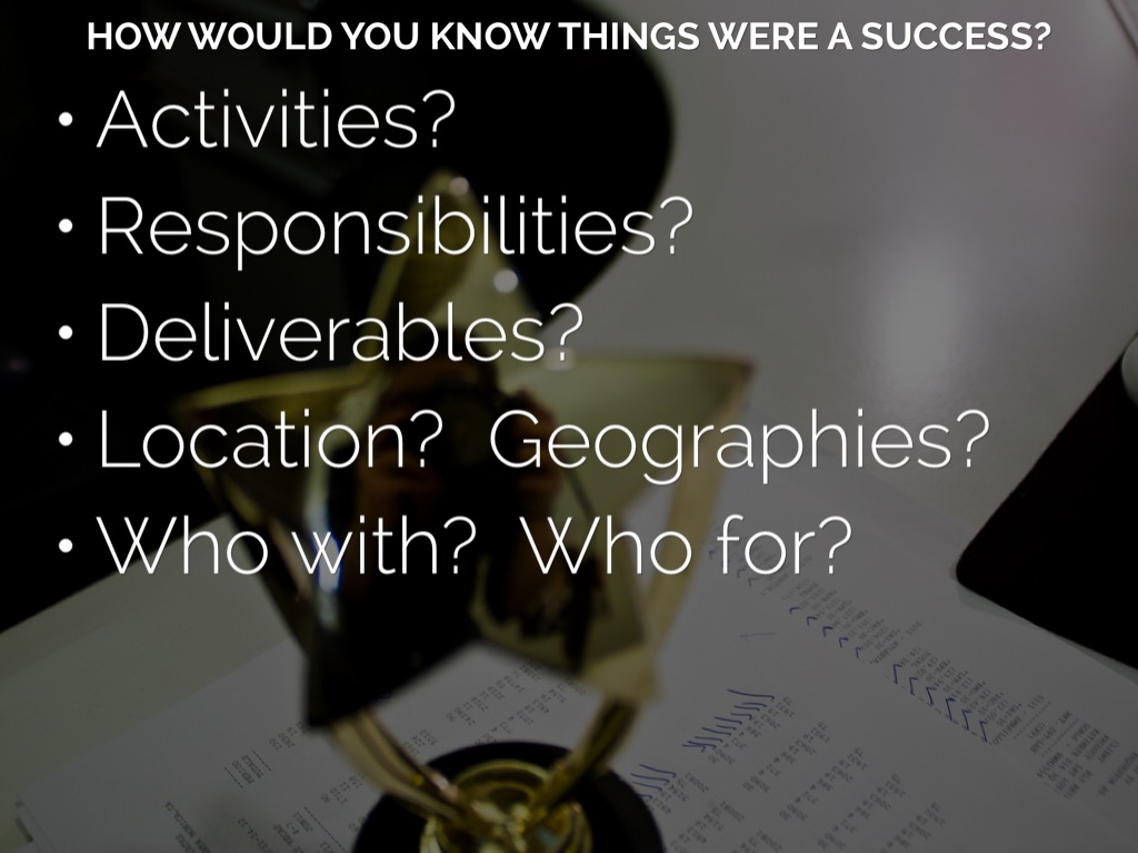 HOW WOULD YOU KNOW THINGS WERE A SUCCESS?