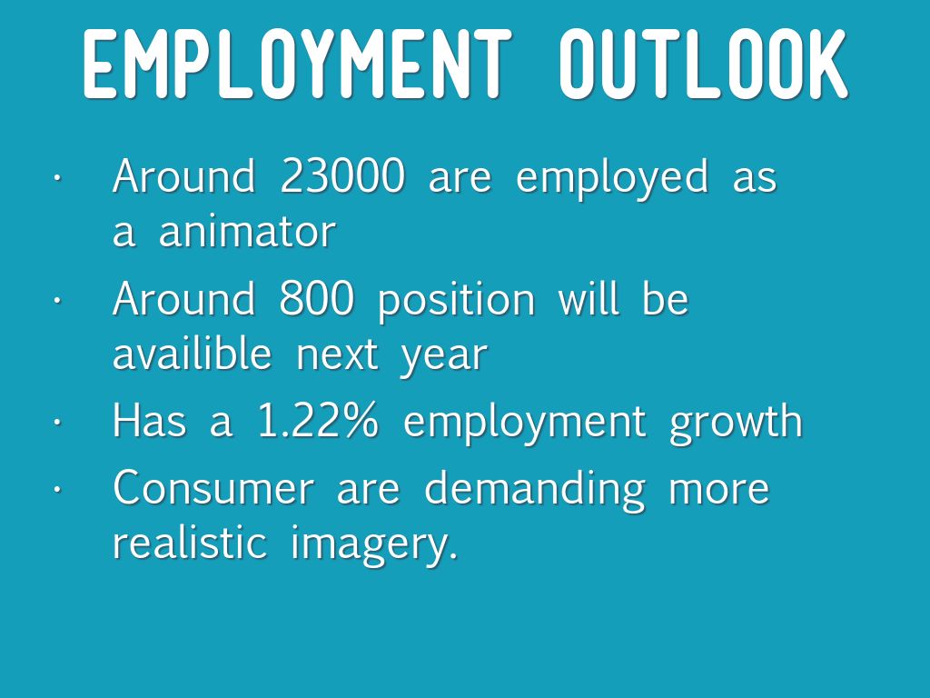 • It is possible to be promoted to director of animation but it is only after many years of working for the company.