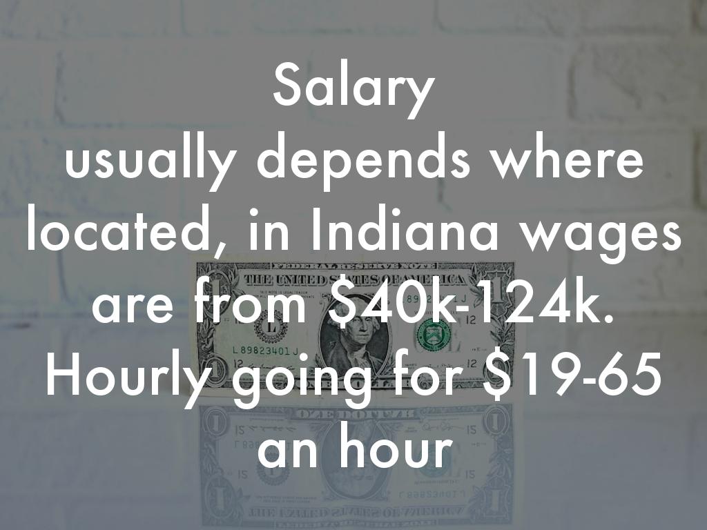 usually depends where located, in Indiana wages are from $40k-124k. Hourly going for $19-65 an hour