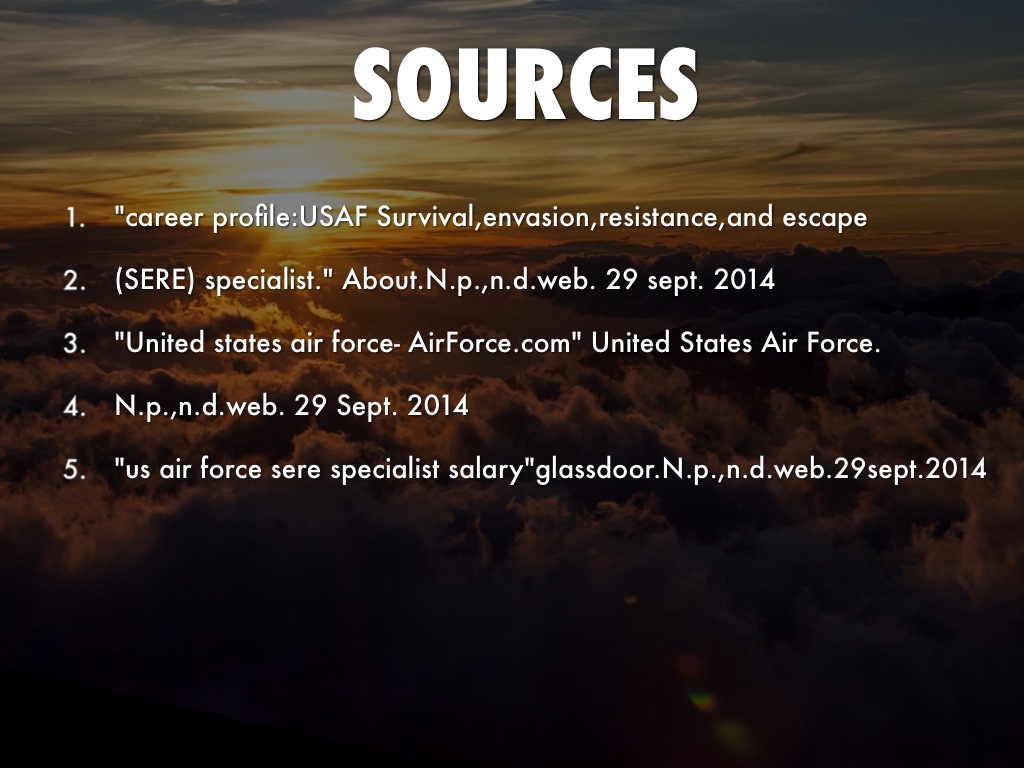 "us air force sere specialist salary"glassdoor.N.p.,n.d.web.29sept.2014